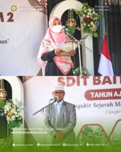 Ustadz Ali Muhsin selaku anggota Dewan Masyayikh mewakili Pimpinan Pondok Pesantren Modern Baitussalam dalam sambutannya menyampaikan terima kasih dan apresiasi atas terselenggaranya acara dan prestasi yang diraih SDIT Baitussalam 2 Cangkringan. Beliau juga menceritakan sejarah berdirinya SDIT Baitussalam 2, juga berpesan kepada orangtua untuk memilihkan sekolah lanjutan untuk Ananda bisa memilih ke SMPIT Baitussalam 2 Cangkringan, SMP IT Baitussalam Prambanan ataupun SMP Qur’an Global Sains Blitar. Beliau berpesan kepada siswa kelas 6 terus melanjutkan belajar untuk mencapai cita-cita.