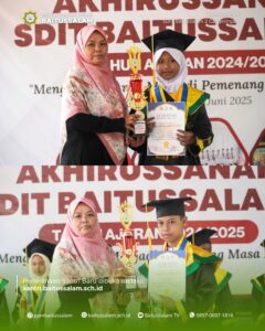Sleman-SDIT Baitussalam 2 Cangkringan menggelar acara Akhirussanah siswa kelas 6 Tahun Ajaran 2024/2025 dengan tema “Mengukir Sejarah Menjadi Pemenang Masa Depan” pada Selasa 24 Juni 2025 di kompleks SDIT Baitussalam 2 Cangkringan. Akhirussanah ini diikuti oleh 54 siswa kelas 6, serta dihadiri oleh jajaran guru, orangtua siswa dan tamu undangan. Dalam acara ini hadir pula anggota DPRD Kabupaten Sleman Bapak Yani Fathur Rahman, S.Pd.I, dan perwakilan Panewu Kapanewon Cangkringan.