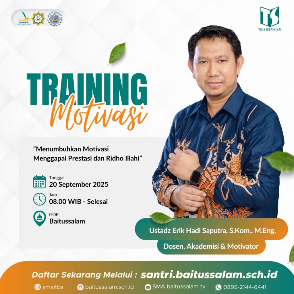 Sleman – SMA Islam Terpadu Baitussalam menggandeng Penerbit Tiga Serangkai dalam Kegiatan Achievement Motivation Training (AMT). Kegiatan yang dilaksanakan pada hari Sabtu, 20 September 2025 di GOR PPM Baitussalam tersebut mengangkat tema “Menumbuhkan Motivasi Menggapai Prestasi dan Ridho Illahi”. AMT ini menghadirkan motivator ternama yaitu Ustaz Erik Hadi Saputra, S.Kom., M.Eng. yang bertujuan untuk memotivasi […]