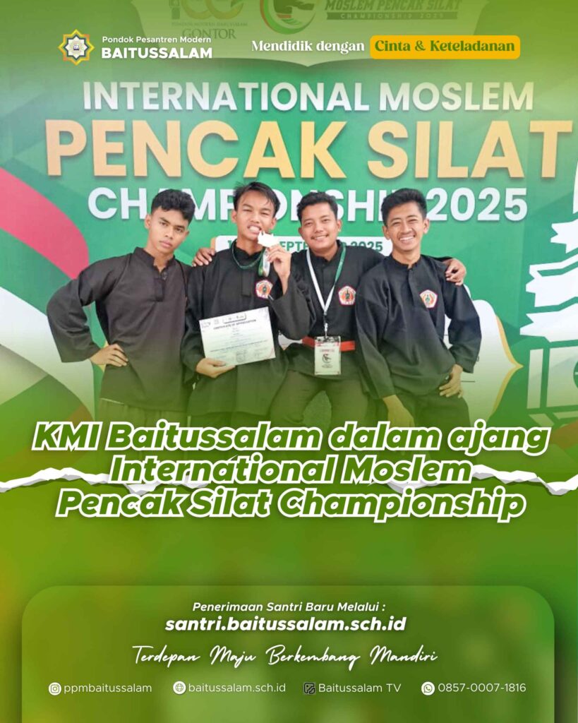 Tangerang, Banten – Kabar membanggakan datang dari santri Madrasah Kulliyatul Mu’allimin Al-Islamiyah (KMI) Pondok Pesantren Modern (PPM) Baitussalam. Tiga santri KMI Baitussalam berhasil meraih medali perunggu dalam ajang bergengsi International Moslem Pencak Silat Championship (IMPSC) 2025. Kejuaraan ini diselenggarakan sebagai bagian dari peringatan 100 tahun Pondok Modern Darussalam Gontor. Kompetisi ini berlangsung selama empat hari, […]