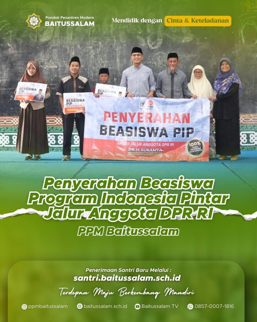 Sleman-Pondok Pesantren Modern Baitussalam baru-baru ini menyelenggarakan acara penyaluran beasiswa PIP. beasiswa PIP ini dihadiri oleh Dr. H. Sukamta, Ph.D, dan Hj. Sumaryatin, S.Sos., M.A. Acara ini berlangsung dengan penuh khidmat dan diisi dengan berbagai penampilan dari santri dan siswa SDIT, SMP IT Baitussalam Prambanan. Acara ini berlangsung pada hari jum’at tanggal 26 September 2025 […]