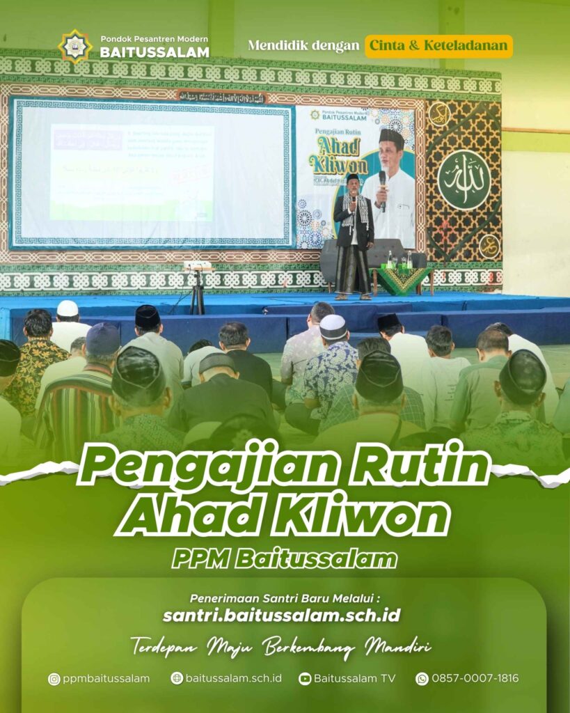 Blitar–Pondok Pesantren Modern Qur’an Global Sains Baitussalam 3 Blitar menggelar pengajian Ahad Pon pada Ahad, 28 September 2025 di depan masjid komplek pondok pesantren. Pengajian ini dihadiri lebih dari 200 peserta yang terdiri dari para santri, orangtua santri, ustadz-ustadzah, tokoh masyarakat dan masyarakat sekitar pondok baik orangtua, muda mudi maupun anak anak. Rangkaian pengajian Ahad […]