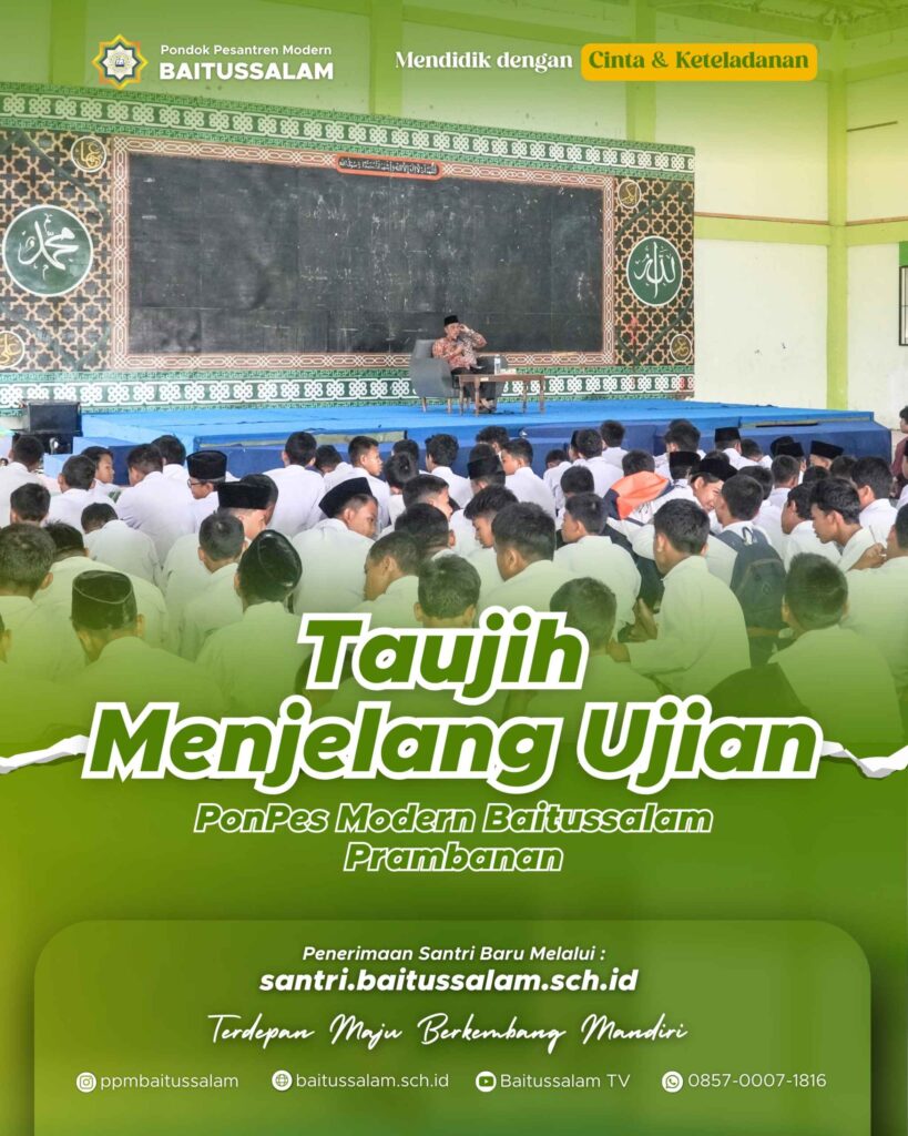 Sleman – Menjelang berakhirnya kegiatan pembelajaran semester gasal, Ponpes Modern Baitussalam mengadakan Taujih Menjelang Ujian bagi seluruh santri baik SMP, SMA, maupun KMI. Kegiatan yang dilaksanakan pada Senin, 24 November 2025 di GOR Baitussalam ini bertujuan untuk memberikan motivasi sekaligus pengingat agar santri mempersiapkan ujian dengan sebaik-baiknya. Kegiatan dimulai pada pukul 07.30 WIB dengan pembukaan […]