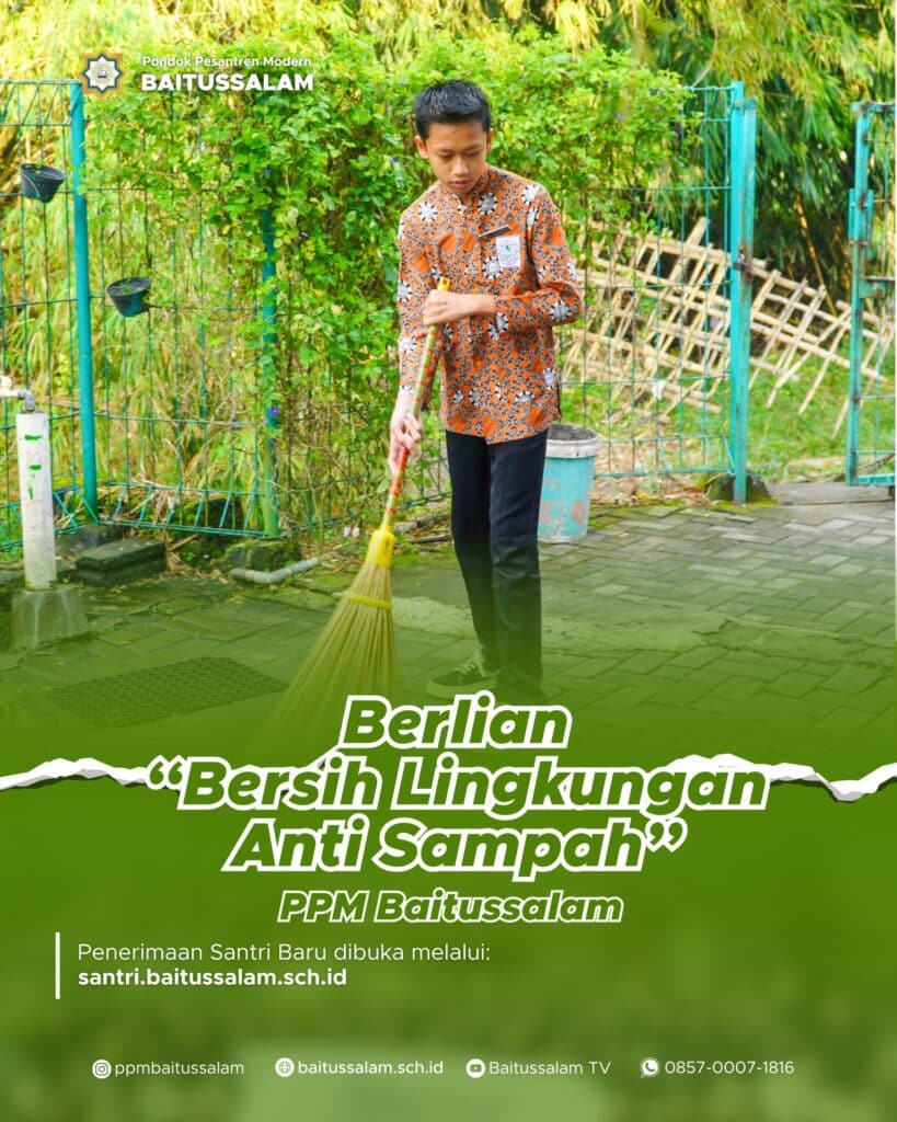 Sleman — Pondok Pesantren Modern (PPM) Baitussalam resmi meluncurkan program bersih lingkungan yakni BERLIAN (Bersih Lingkungan Anti Sampah) dan LIMAS (5 Menit Ambil Sampah), yang diinisiasi oleh Bidang Kerumahtanggaan. Kegiatan ini melibatkan seluruh elemen pondok, mulai dari ustadz/ustadzah, karyawan/karyawati, hingga para santri. Program BERLIAN (bersih lingkungan anti sampah) ini dilaksanakan selama 30 menit di hari […]