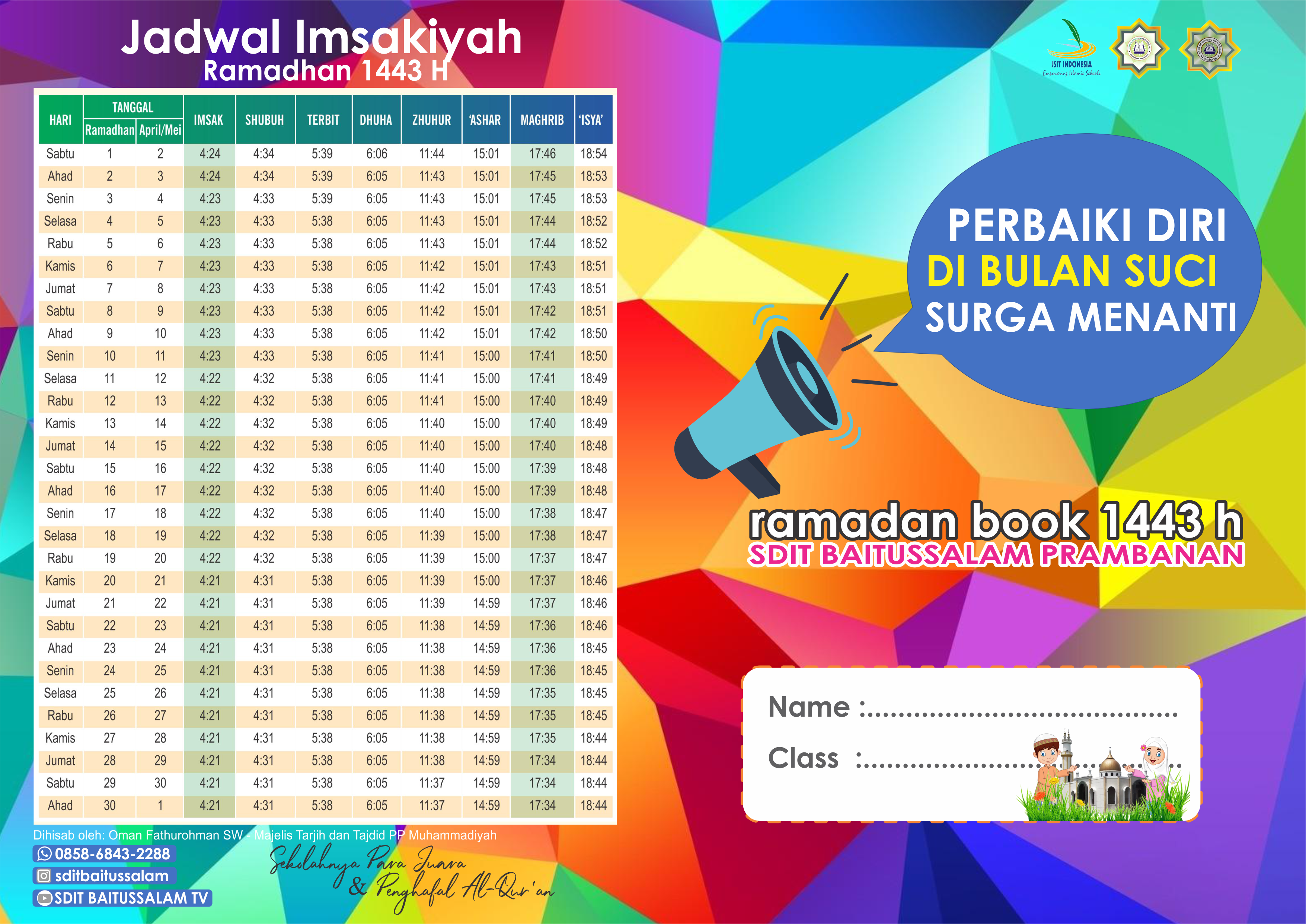 Desain buku ramadhan terbaru tahun 2022 bisa di download di sini. Itulah Isi Buku Ramadhan SDIT Baitussalam Prambanan semoga bisa menjadi motivasi tambahan dalam mengamalkan kegiatan ibadah puasa Ramdhan tahun ini. (jan/red)