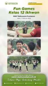 Semoga dengan kegiatan fun games dan AMT ini tidak hanya menjadi sarana hiburan setelah rutinitas belajar, tetapi juga memberikan motivasi serta mempererat kebersamaan antarsiswa. Diharapkan melalui kegiatan ini, para siswa kelas XII semakin siap menghadapi tantangan ke depan dengan semangat, kepercayaan diri, dan sikap positif. (Bidang Humas Ponpes Modern Baitussalam)