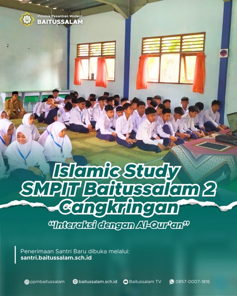 Sleman (HBS) – SMPIT Baitussalam 2 Cangkringan kembali menggelar agenda inspiratif. Agenda tersebut untuk menyemarakkan bulan suci Ramadan. Tema yang kami usung adalah “Interaksi dengan Al-Qur’an” kegiatan Islamic Study ini menjadi bagian dari Program Pembinaan Karakter . Kegiatan ini menitikberatkan pada penguatan nilai-nilai Al-Qur’an dalam kehidupan sehari-hari.