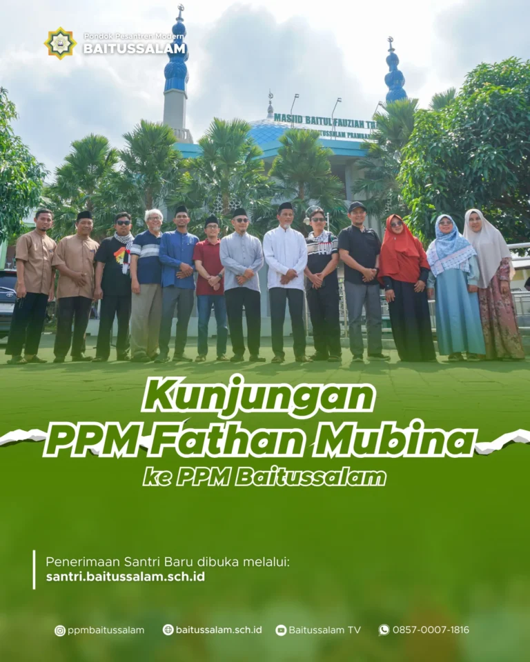 Sleman-Pondok Pesantren Modern Baitussalam menerima kunjungan persahabatan dari Pondok Pesantren Modern Fathan Mubina. Pondok pesantren ini beralamat di Gang Haji Noing bin Daboih, desa Bojongkulur, Gunung Putri, Bogor, Sabtu 21 Juni 2025. Kunjungan ini menjadi moment penting dalam rangka mempererat silaturahmi , serta berbagi wawasan antar antar pondok pesantren. Mengingat pondok pesantren ini memiliki visi dan misi sama dalam mencetak generasi Islam yang unggul dalam ilmu dan akhlak. Tujuan dari kunjungan ini juga untuk memperluas jaringan ukhuwah antar pondok pesantren, saling bertukar pengalaman dalam metode pembelajaran dan pengelolaan lembaga, serta membuka peluang berkolaborasi di masa dating, baik dalam bentuk seminar, pelatihan maupun program pertukaran santri. Rombongan dari PPM Fathan Mubina berjumlah 10 orang yang dipimpin oleh Ustadz Ahmad Ghufron, M.Sos beserta jajaran pimpinan dan dewan asatiz.