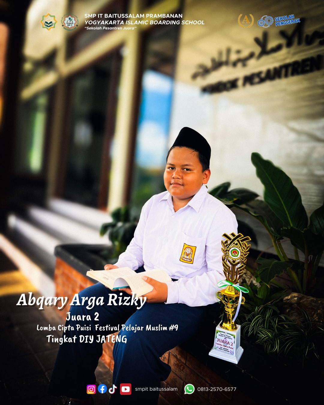 Sebagai pelopor pendidikan Islam Modern di Prambanan Yogyakarta dan sekitarnya sejak 1986, Pondok Pesantren Modern Baitussalam terus berinovasi dalam membentuk generasi unggul yang berakhlak mulia dan berpengetahuan luas. Dengan kurikulum terpadu yang memadukan ilmu agama, budaya, sains dan teknologi, kami bangga menjadi lembaga pendidikan yang berkembang pesat, mandiri, dan selalu siap menjawab tantangan zaman. Bersama kami, santri dididik bukan hanya untuk paham ilmu, tapi juga mampu berkontribusi nyata bagi umat dan bangsa.