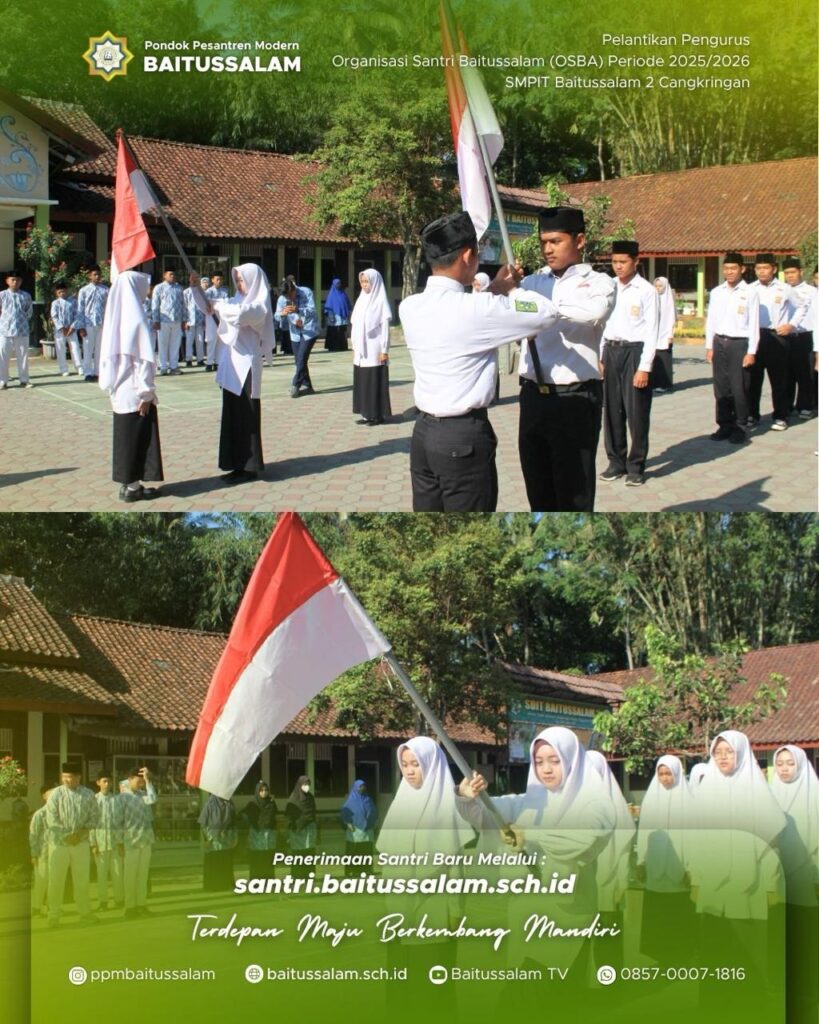 SlemanSMPIT Baitussalam 2 Cangkringan menggelar Pelantikan Pengurus Organisasi Siswa Baitussalam (OSBA) Periode 2025/2026 pada Kamis (16/10/2025) di Lapangan Upacara Komplek Baitussalam 2 Cangkringan, Salam, Wukir Sari, Cangkringan, Sleman. Kegiatan ini diikuti oleh seluruh Ustadz/ah dan peserta didik SMPIT Baitussalam 2 Cangkringan.