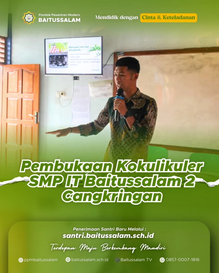 Sleman – SMP IT Baitussalam 2 Cangkringan menggelar Pembukaan Kokurikuler pada Jumat (12/9/2025) di Aula sekolah. Kegiatan ini diikuti oleh seluruh santri kelas VII dan VIII dengan penuh antusias.