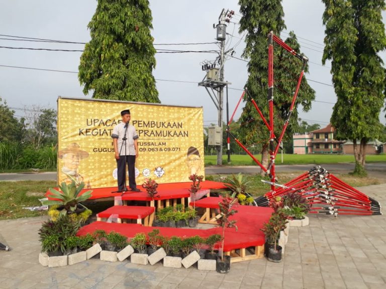 Setelah selesai menyelesaikan seluruh persiapan hari sabtu jam 07.30 pembukaan kegiatan pramuka di mulai, seluruh santri bergegas menuju lapangan pembukaan pramuka yang betempat di depan GOR, dengan berbagai persiapan kelompok mereka dari Umar Bin Khotob, Usman Bin Affan, Kholid Bin Walid dll seluruh santri berjalan bersama-sama dari asrama ke lapnagan dengan di iringi lagu-lagu cipataan grub atau kelompok masing-masing. Upacara di mulai dengan hikmat seluruh santri mengikuti agenda dari pembukaan sampai penutupan, Pembukaan dihadiri seluruh santri dan guru-guru