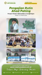 Sleman – Pondok Pesantren Modern Baitussalam 2 Cangkringan kembali menyelenggarakan kegiatan rutin Pengajian Ahad Pahing pada Ahad (25/01/2026). Kegiatan ini berlangsung di halaman SDIT Baitussalam 2 Cangkringan dan diikuti oleh orang tua santri, ustadz dan ustadzah, serta masyarakat sekitar dari berbagai kalangan, mulai dari orang tua, muda-mudi, hingga anak-anak.