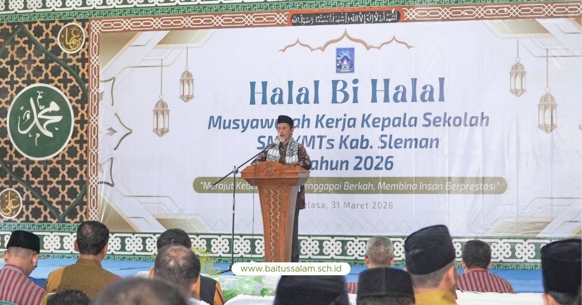 Sleman – Ponpes Modern Baitussalam menjadi tuan rumah kegiatan Halal Bihalal Musyawarah Kerja Kepala Sekolah (MKKS) jenjang SMP se-Kabupaten Sleman yang diselenggarakan pada Selasa, 31 Maret 2026. Kegiatan ini berlangsung di GOR Ponpes Modern Baitussalam Prambanan dan dihadiri oleh Bupati Kabupaten Sleman, Bapak Harda Kiswaya, S.E., M.Si., Panewu Prambanan Ibu Purwati, S.H., M.M., Kepala Dinas Pendidikan Kabupaten Sleman, Bapak Mustadi, S.Sos., M.M., beserta jajaran, serta para kepala sekolah SMP se-Kabupaten Sleman.