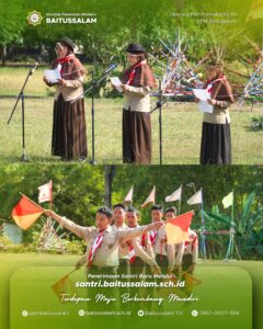 Kegiatan diakhiri dengan pembacaan doa dan penampilan seni dari santri Baitussalam, yaitu penampilan puisi dari SD IT Baitussalam Prambanan, pertunjukkan semaphore serta tari pica-pica dari santri SMP IT dan SMA IT Baitussalam Prambanan. Suasana penuh semangat dan kebersamaan mewarnai peringatan Hari Pramuka kali ini, menjadi momentum untuk memperkuat solidaritas dan kontribusi nyata bagi bangsa.