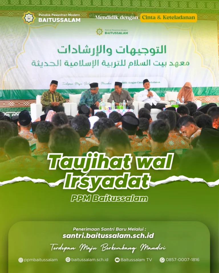 Sleman– Rabu, 16 Juli 2025, PPM Baitussalam melaksanakan Taujihat Wal Irsyadat ( Pengarahan dan Petunjuk) oleh pimpinan PPM Baitussalam yakni Ustadz Abdul Hakim AKA  untuk seluruh santri Baitussalam. Kegiatan dilaksanakan di GOR Baitussalam. Pertemuan tersebut dihadiri oleh kepala unit, ustadz dan ustadzah SMP IT Baitussalam Prambanan, SMAIT Baitussalam, KMI Baitussalam, serta SMP Quran Sains, Blitar.