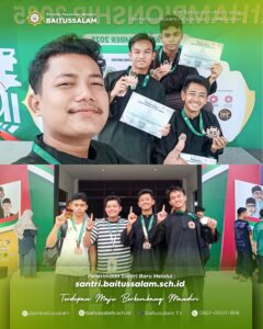 Tangerang, Banten – Kabar membanggakan datang dari santri Madrasah Kulliyatul Mu’allimin Al-Islamiyah (KMI) Pondok Pesantren Modern (PPM) Baitussalam. Tiga santri KMI Baitussalam berhasil meraih medali perunggu dalam ajang bergengsi International Moslem Pencak Silat Championship (IMPSC) 2025. Kejuaraan ini diselenggarakan sebagai bagian dari peringatan 100 tahun Pondok Modern Darussalam Gontor. Kompetisi ini berlangsung selama empat hari, mulai dari Selasa, 16 hingga Jumat, 19 September 2025. Pertandingan diselenggarakan di Indomilk Indoor Stadium, Kabupaten Tangerang, Banten, Indonesia.